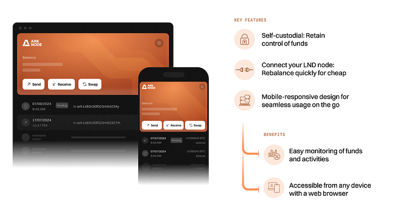 Speaking of powerful tools, Bitcoin Amsterdam 2024 provided an opportunity to get an exclusive preview of our soon-to-be-released fully non-custodial wallet Ark Node, set to enable users to seamlessly send, receive, and swap Bitcoin over Lightning — all through an intuitive, easy-to-use dashboard.